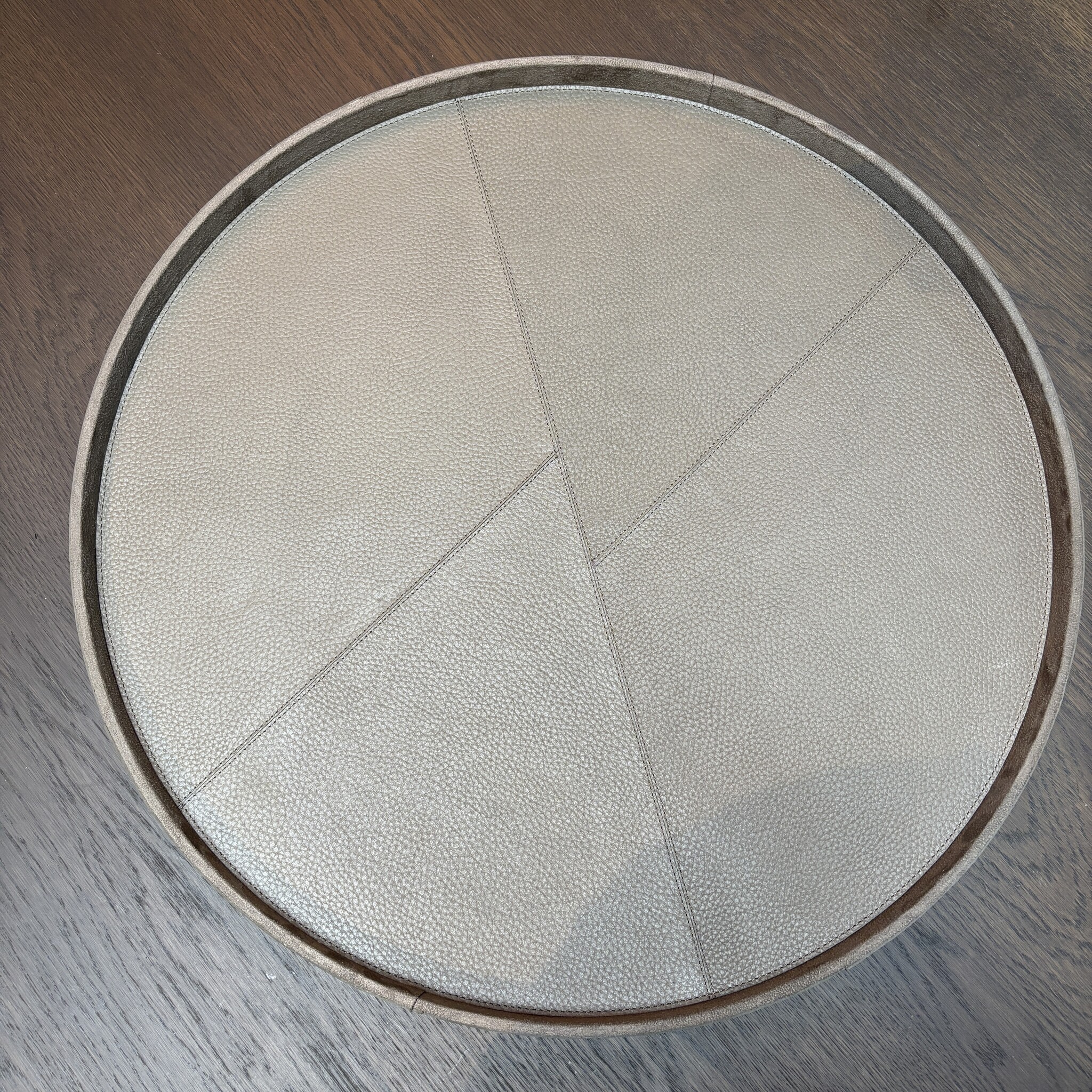 Prachtige dienbladen van mooie kwaliteit leer. Mooi afgewerkt en verpakt in een sjieke doos. Rond 50cm x 2,5cm