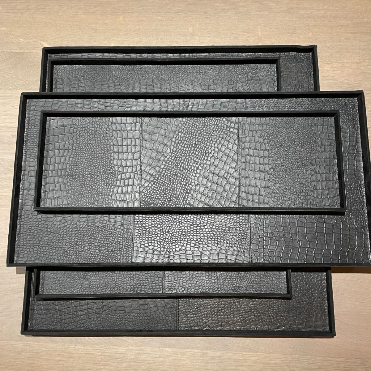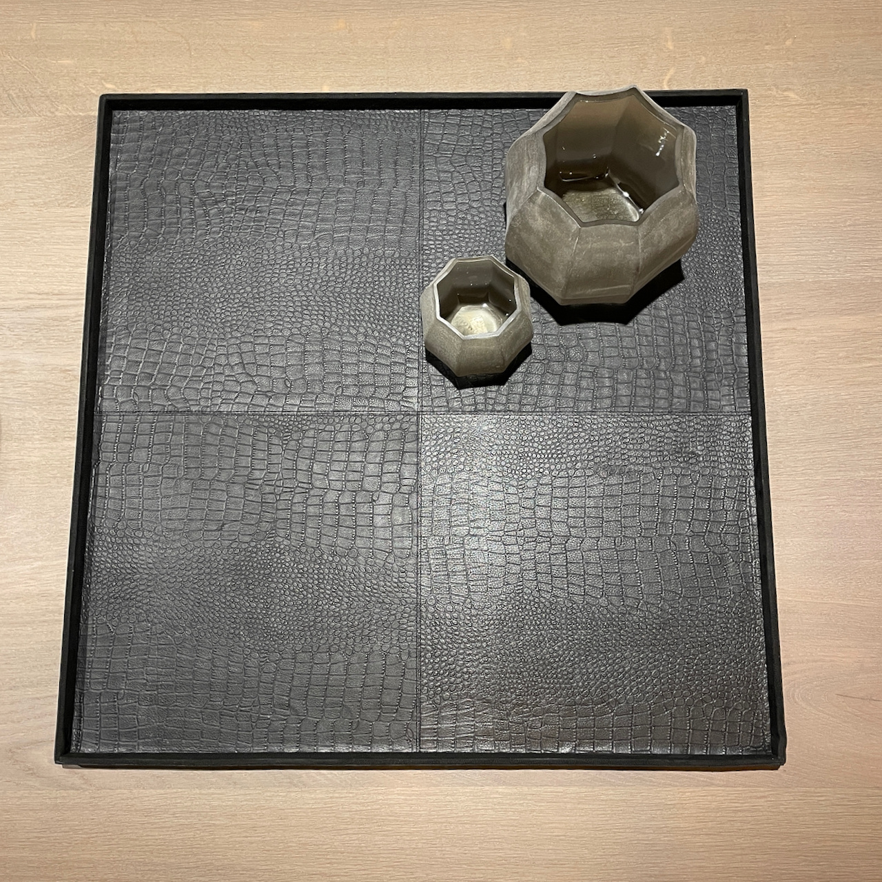 Ontdek onze prachtige dienbladen van hoogwaardig leer, met oog voor detail en vakmanschap gemaakt. Deze stijlvolle dienbladen zijn perfect afgewerkt en worden geleverd in een luxe geschenkdoos, waardoor ze niet alleen functioneel zijn, maar ook een elegant decoratief accent vormen in elk interieur.