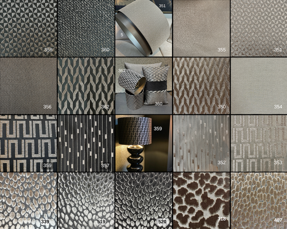 De lampenkappen zijn verkrijgbaar in vele stoffen, bekijk de stalen op de foto's en stel zo uw eigen lampenkap samen.