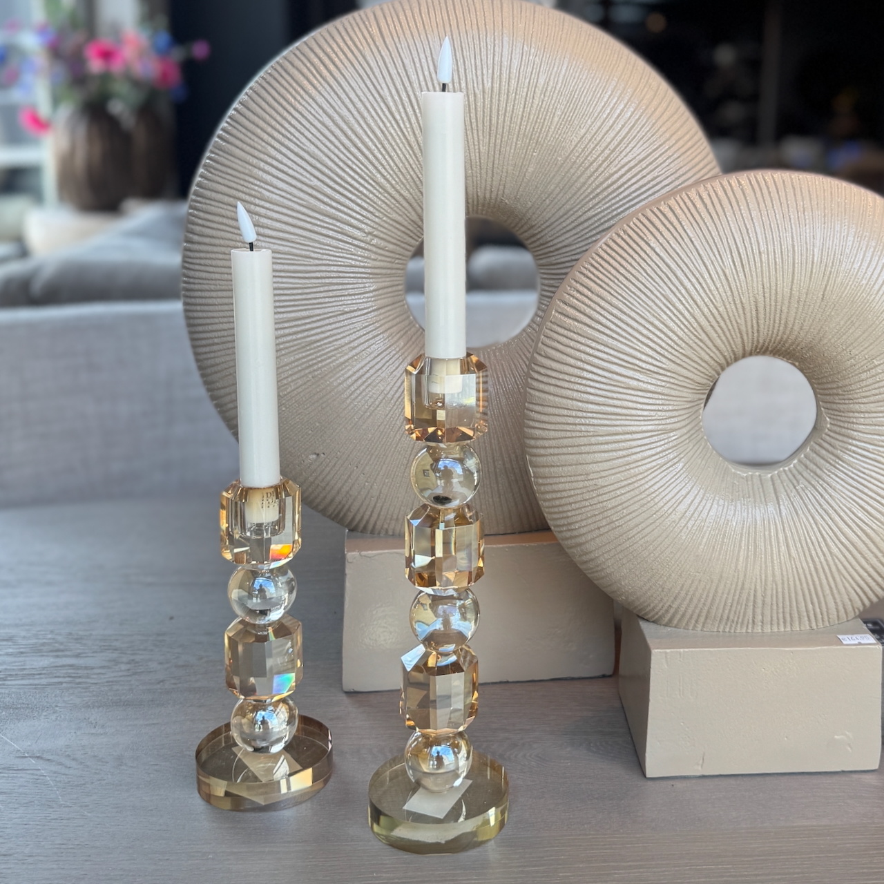 Glazen kandelaars Champagne