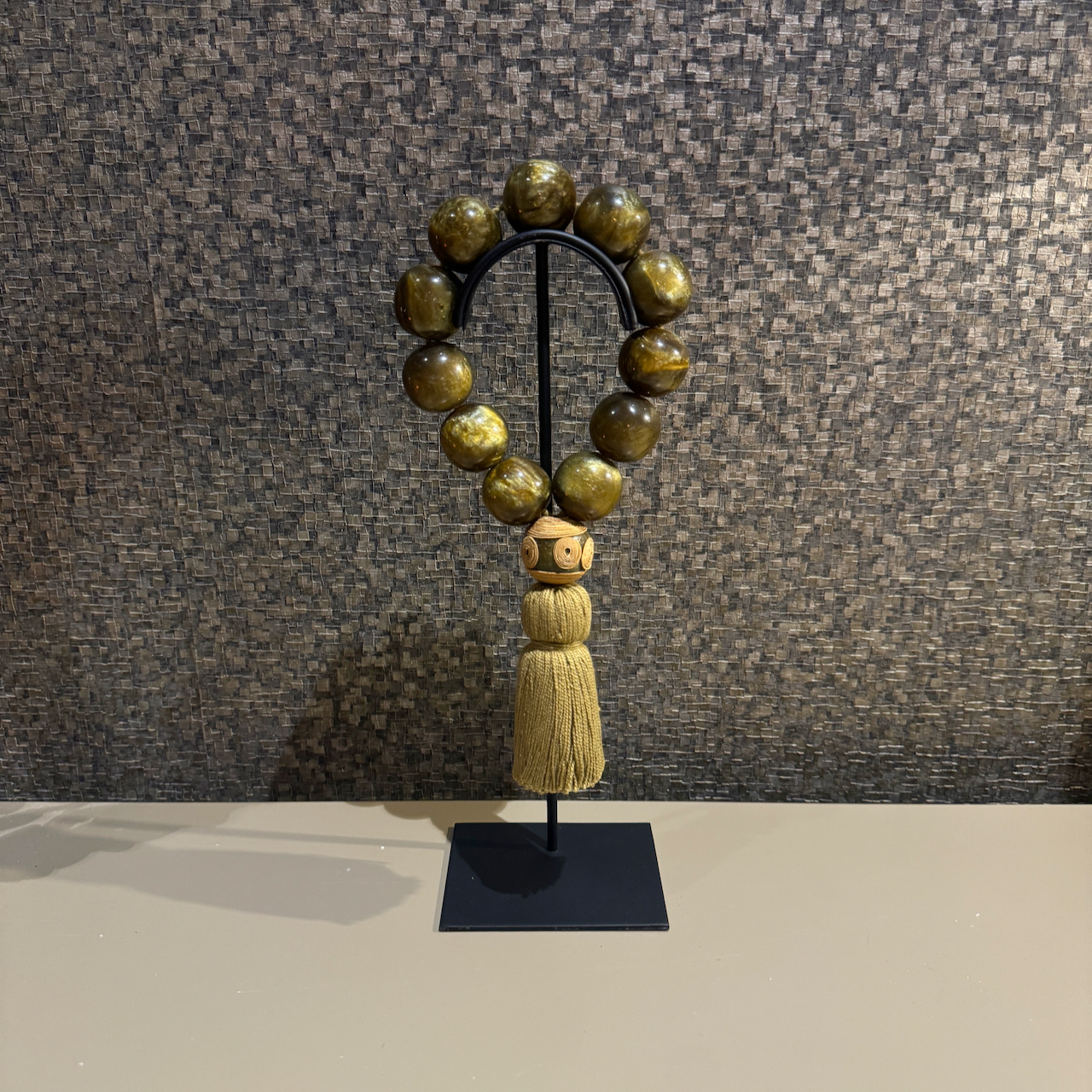 Kralenketting op standaard in prachtige olijf groene kleur.