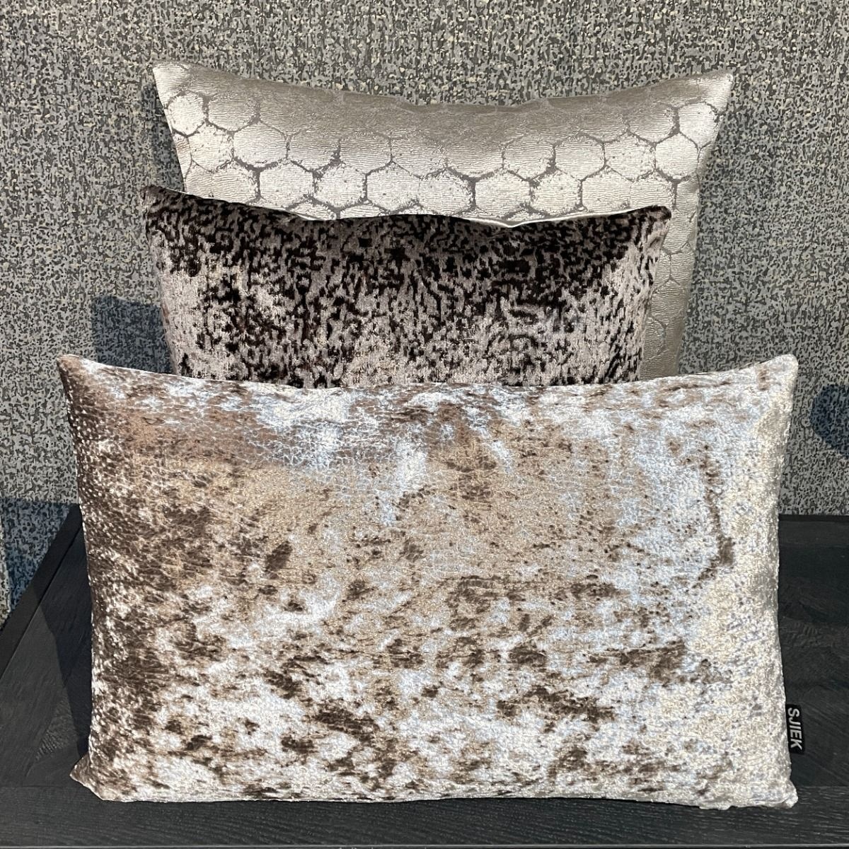 1x 50x30: Velours luxe panter print in champagne . nr.112