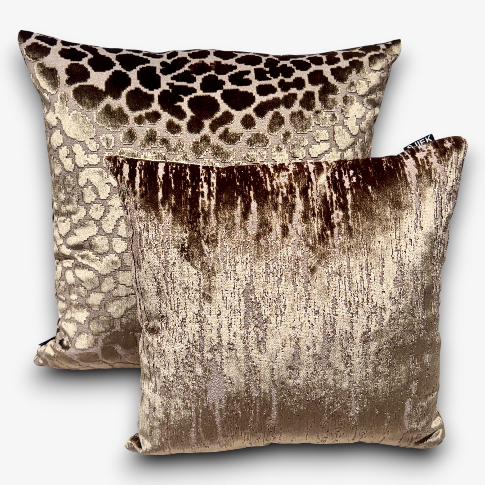 Velours kussens met velour wat erop ligt in goud. Mooie warme kleur die prachtig combineert, echt heel warm.