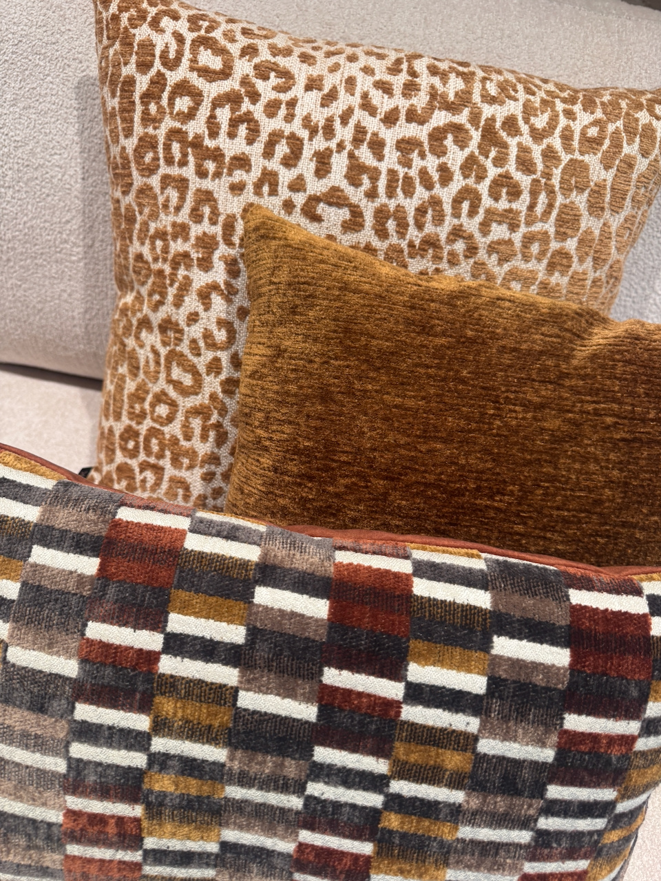 Geef je interieur een warme winterse sfeer met deze velours kussens in bordeaux, oker en bruin. Deze rijke kleuren combineren perfect met beige tinten en brengen extra kleur in huis — stijlvol, cosy en helemaal klaar voor het seizoen.