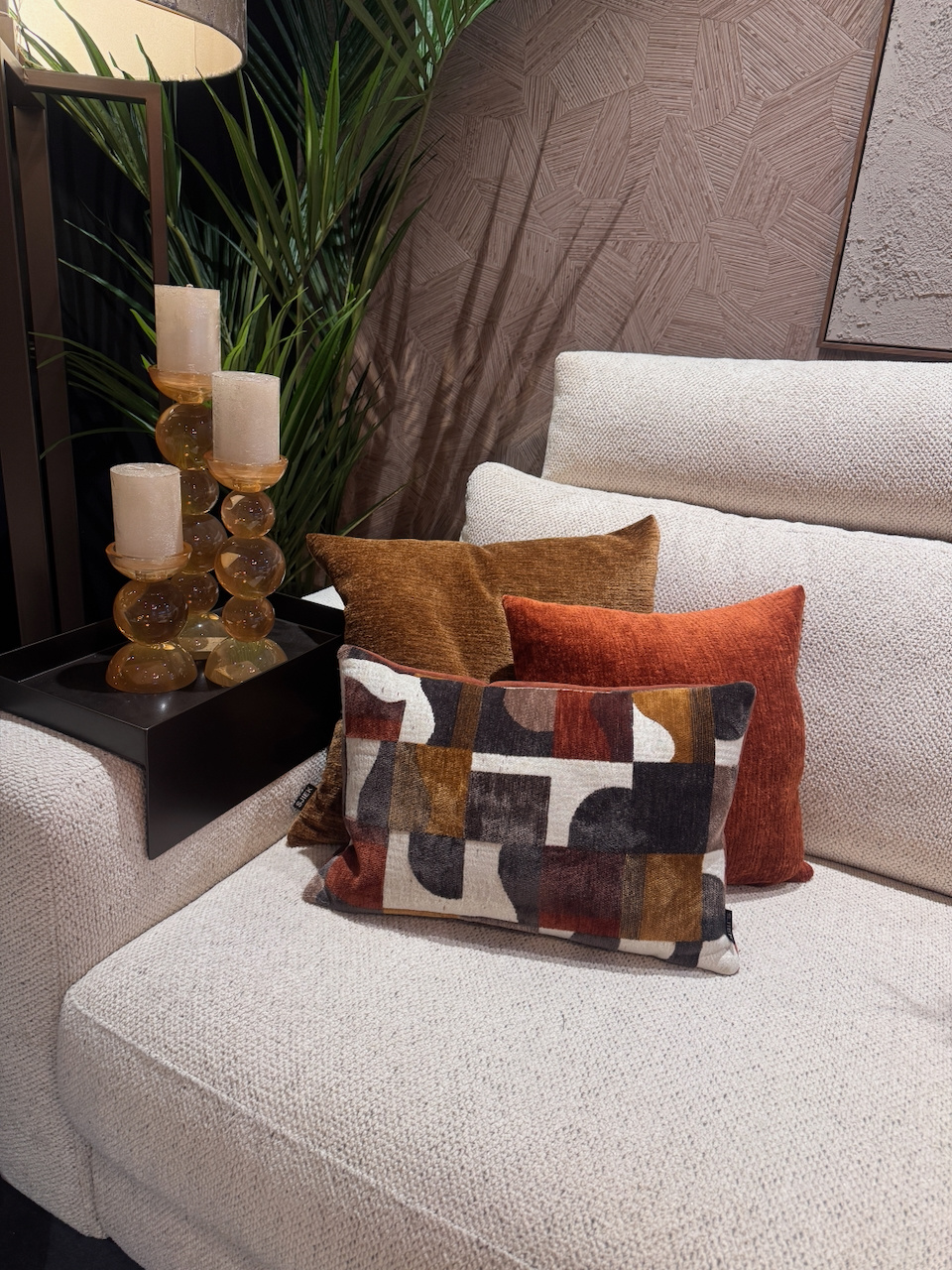Geef je interieur een warme winterse sfeer met deze velours kussens in bordeaux, oker en bruin. Deze rijke kleuren combineren perfect met beige tinten en brengen extra kleur in huis — stijlvol, cosy en helemaal klaar voor het seizoen.