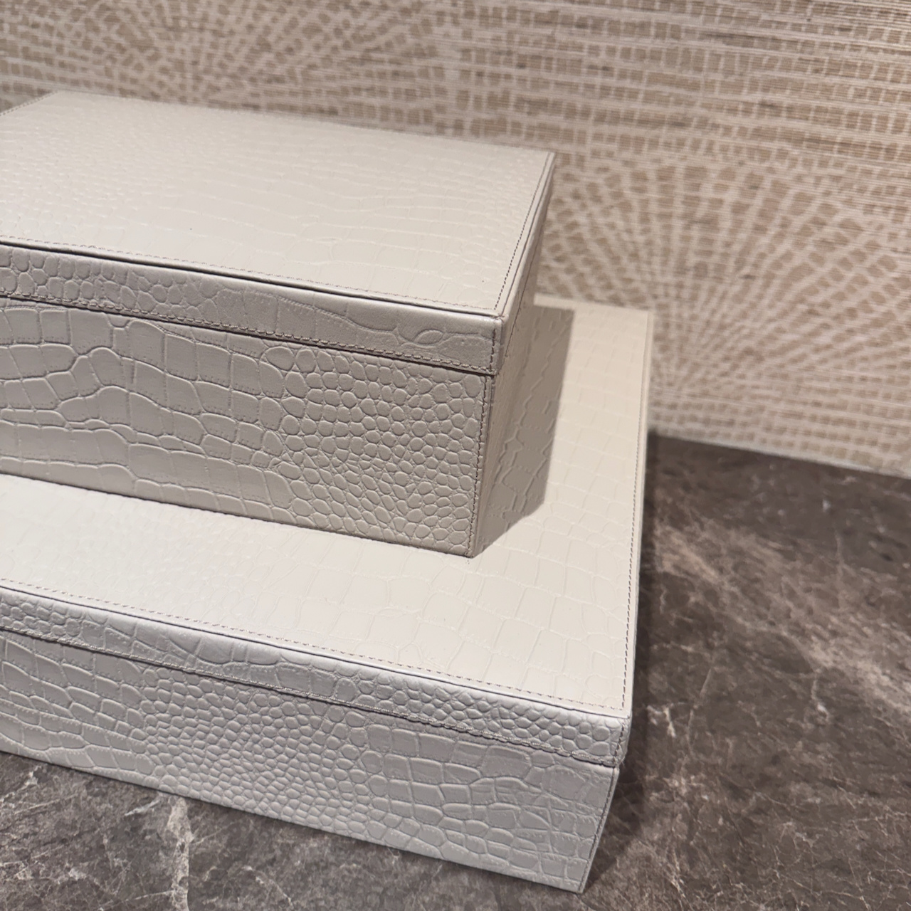 Mooi leren opberg boxen in verschillende maten, leuk voor op tafel, maar ook in een kast staan deze items prachtig. Praktische en hip in jouw woning.