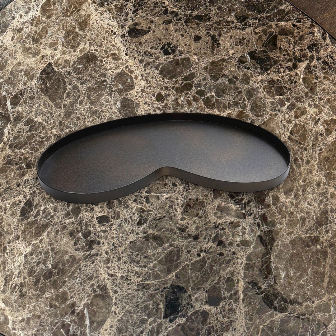 Leuke vorm organisch dienblad wat van metaal gemaakt is. Staat decoratief. Mooie kleur warm Brons. L45 x B26 x H2 cm Er is ook een kleinere maat te bestellen.