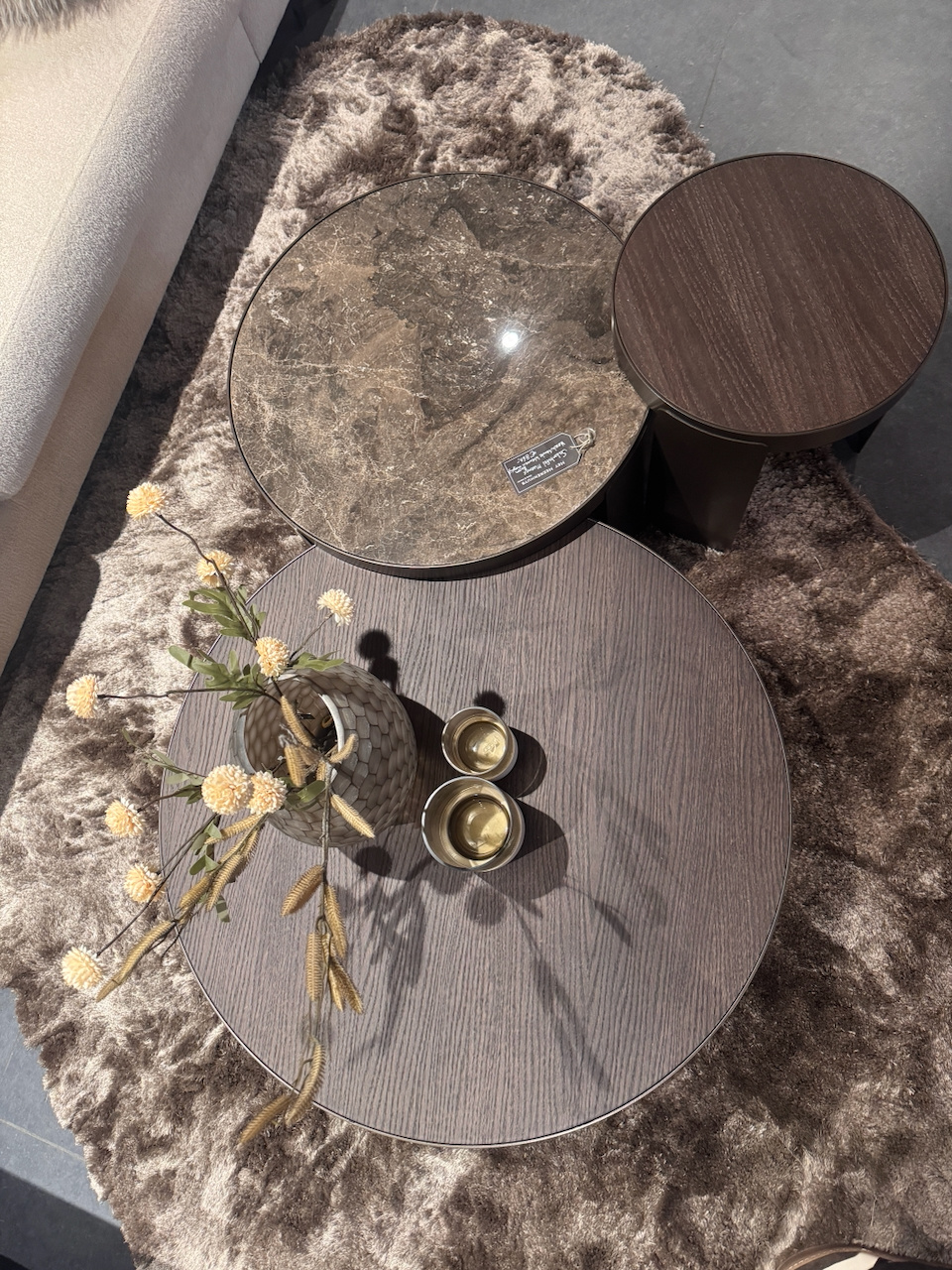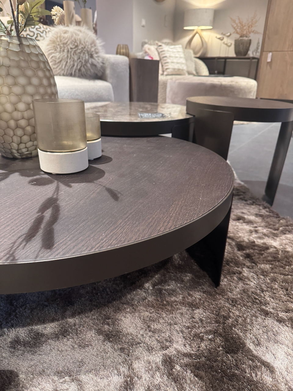 Salontafel Selva is in verschilende maten te verkrijgen. Onderstel is van bruin /brons metaal. 40x40H Met bruin eiken blad €319,- 60x35H Met bruin marmer blad €659,- 80x30H Met bruin eiken blad €695,-