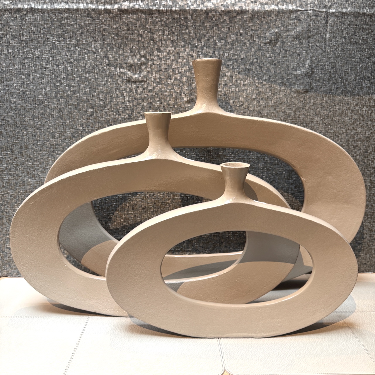 Drie maten vazen met een open gat.