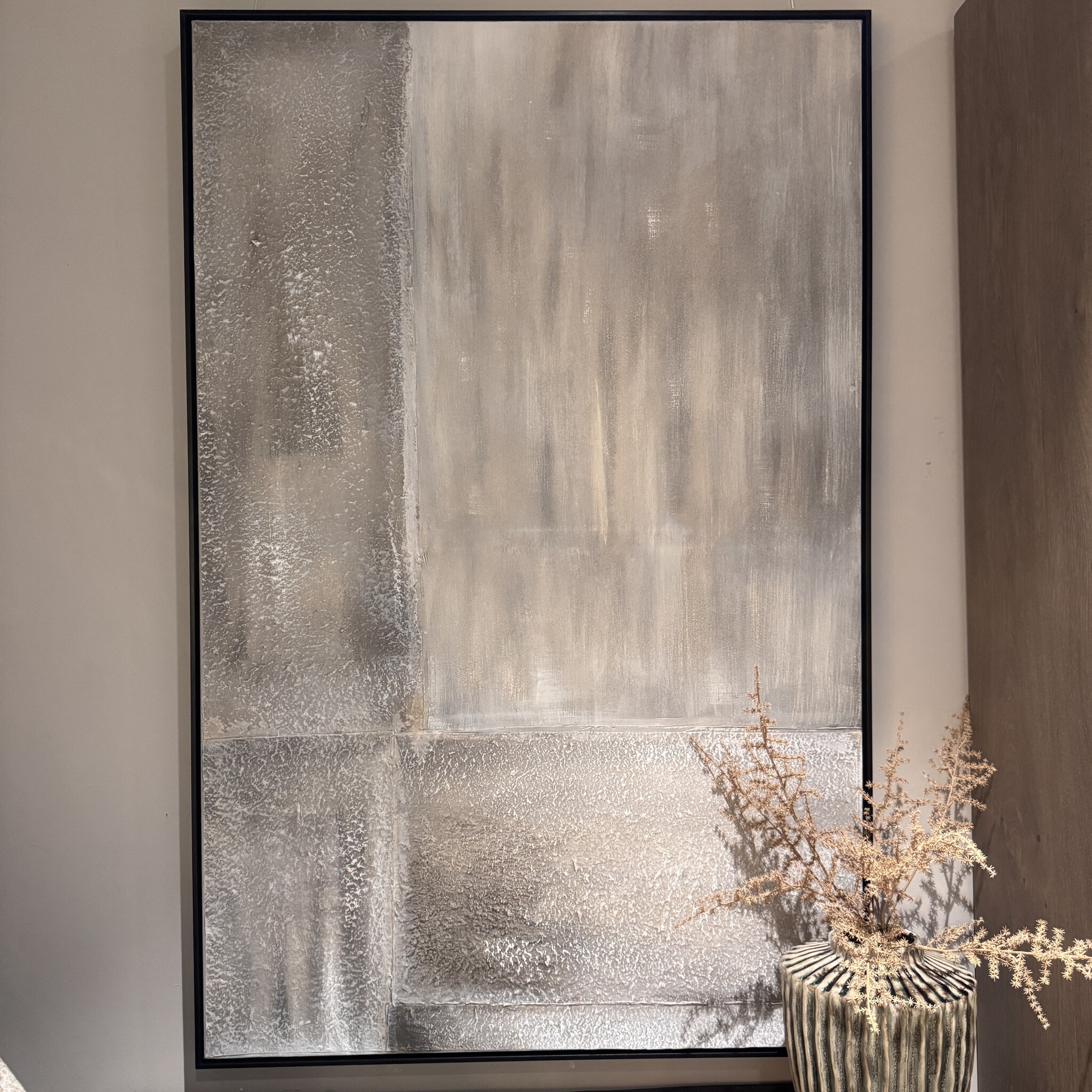 Met houten zwarte lijst, kan ook dwars opgehangen worden.