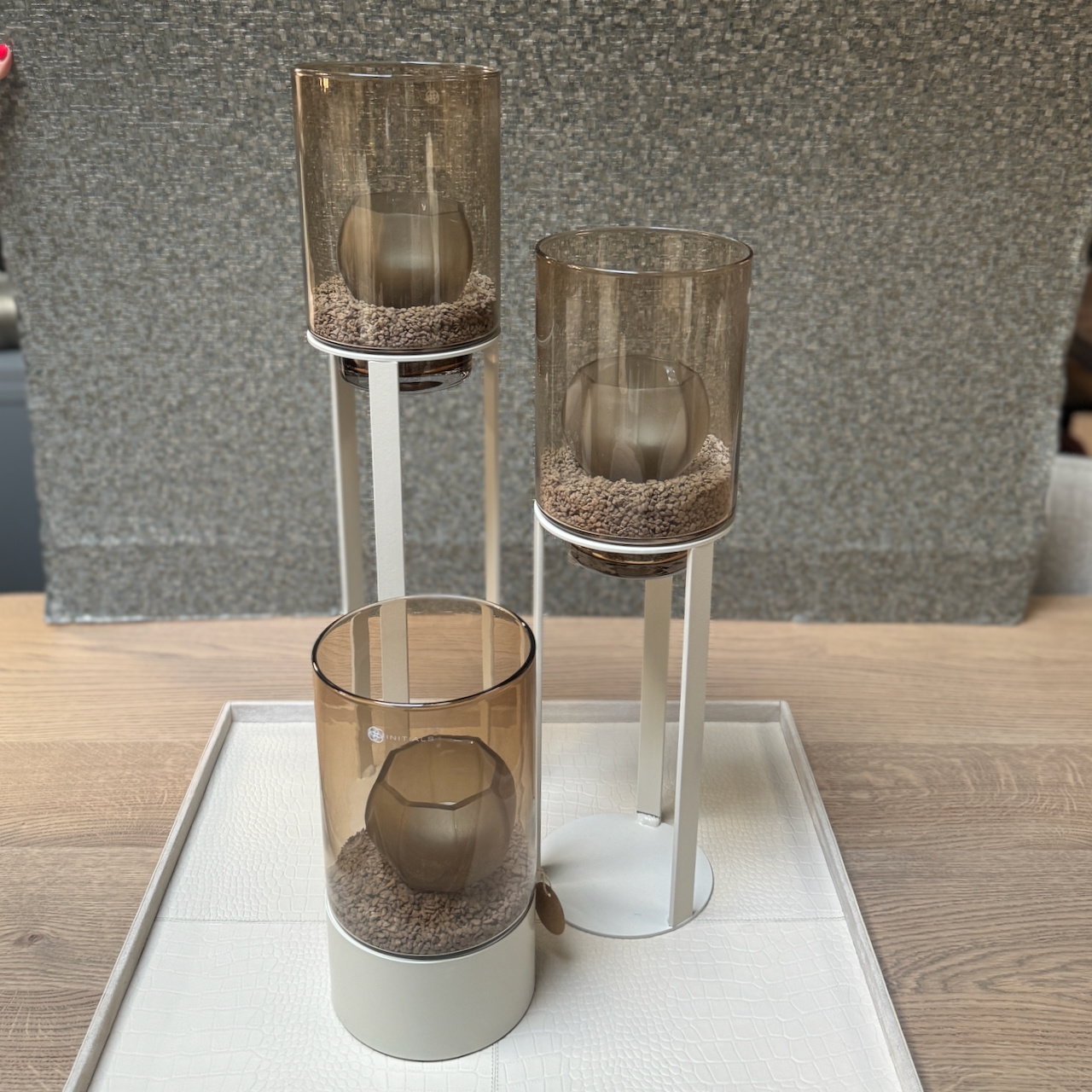 Leuk om er bij te bestellen zijn de kleine steentjes in het beige en zwart en bruin (9,95). Staat de kaars goed stevig.