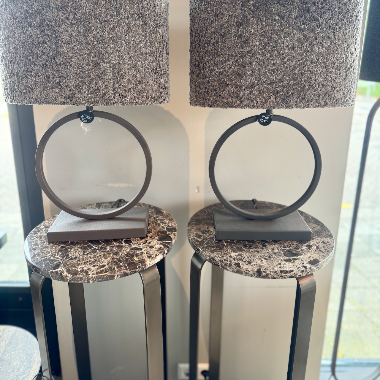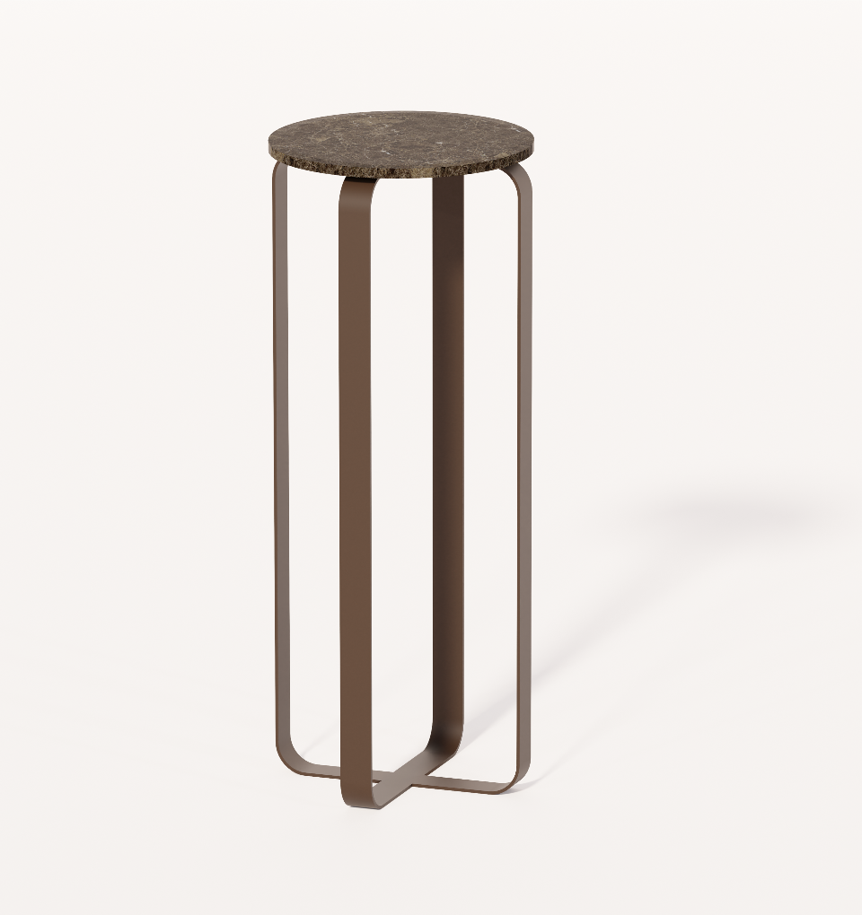 Prachtige zuil, de voet van staal in bruin/brons met het bovenblad taupe marmer. Doorsnee 30cm een 80cm hoog.